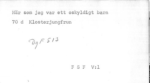 //// När som jag var ett oskyldigt barn //// ¦ ¦ //// 70 d Klosterjungfrun //// D F >'J //// F S F V:1 ////