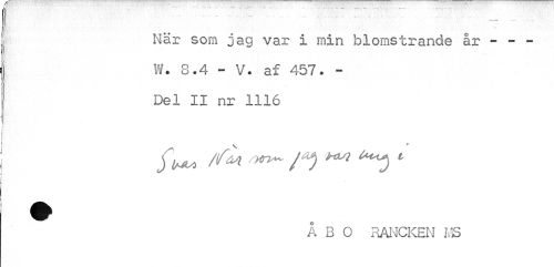 //// ...- ... - V //// När som jag var i min blomstrande år - - -W. 8.4 - V. af 457. -Del II nr 1116 //// \ \jLA W ^ t //// Å B O RANCKEN MS ////