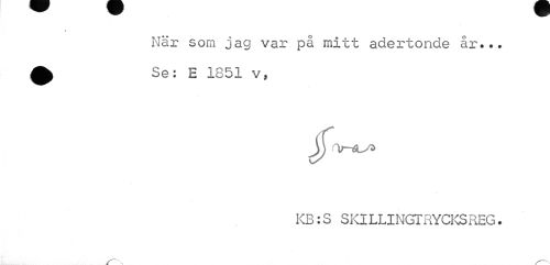 //// « //// När som jag var på mitt adertonde år... ^ Se: E 1851 v, //// KB:S SKILLINGTRYC1CSREG. ////