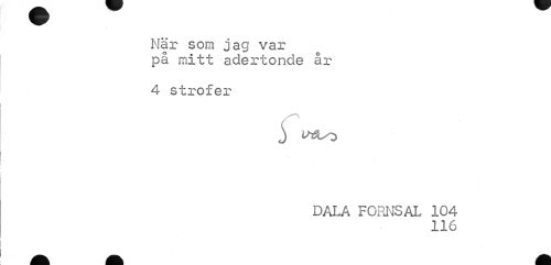 //// När som jag var på mitt adertonde år //// 4 strofer //// DALA FORNS AL 104 //// 116 ////