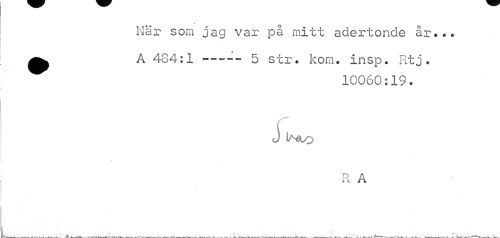 //// När som jag var på mitt adertonde år... //// ^ A 484:1 --- 5 str. kom. insp. Rtj. //// 10060:19. //// j Ia^o //// R A //// ^---„---^a^A^s^^ 4 ^ : ////