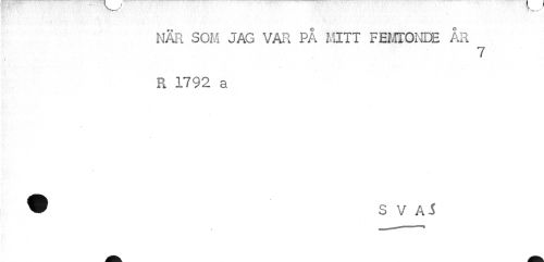 //// NÄR SOM JAG VAR PÅ MITT FEMTONDE ÅR //// 7 //// R 1792 a //// w S V AS ////