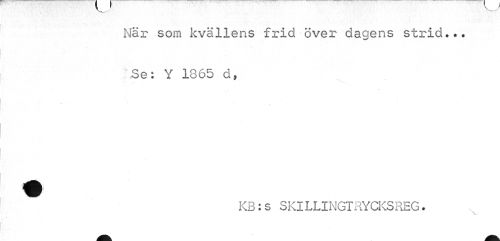 //// När som kvällens frid över dagens strid... "Se: Y 1865 d, //// * • //// KB:s SKILLINGTRYCKSREG. //// V- ////