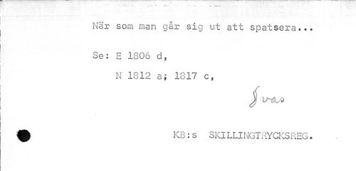 //// När som man går sig ut att spatsera... //// Se: E 1806 d, //// N 1812 a; 1817 c, //// jf v-em //// KB:s SKILLINGTRYCKSREG. ////