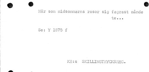 //// När sora midsommarris rosor sig fagrast månde //// C G * • ? //// Se: Y 1875 f //// KB:s SKILLINGTRYCKSREG. ////