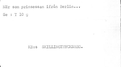 //// I //// När som prinsessan ifrån Berlin... Se : T 10 g //// / //// KB:s SKlLLINGTRYCKSREG. //// j ////