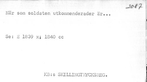 //// jfr??- //// När som soldaten utkommenderader är... //// ¦ ¦ //// ? //// Se: E 1S39 x; 1840 cc //// KB:s SKILLINGTRYCKSREG. | ////