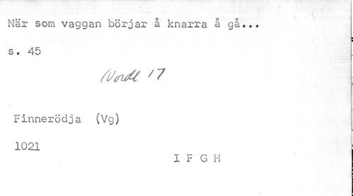 //// När som vaggan börjar å knarra å gå».. //// ¦ ¦ //// s. 45 //// Finnerödja (Vg) 1021 //// I F G H ////