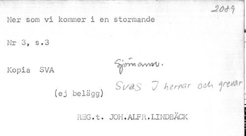 //// Ner som vi kommer i en stormande //// / //// ¦ //// Nr 3, s.3 //// /t " //// ^/^rvi owViAj ' //// Kopia SVA Q //// SV&S 7 herrar ö^ //// (ej belägg) //// REG.t. JOH.ALFR.LINDBÄCK I ////