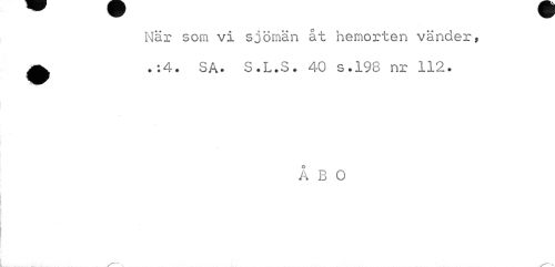 //// När som vi sjömän åt hemorten vänder, ^ .: 4. SA. S.L.S. 40 s.198 nr 112. //// Å B O ////