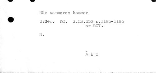 //// När sommaren kommer //// # //// ® 3:a+r. KO. S.LS.352 s.1185-1186 //// nr 507. //// r. t //// « //// ÅBO //// v ////