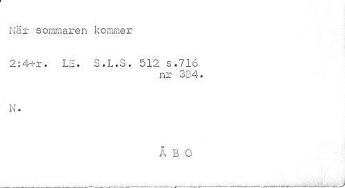 //// När sommaren kommer //// 2:4+r. LE. S.L.S. 512 s.716 //// nr 384. //// ' N. //// Å B O //// ___ _ _ ___^___ ////