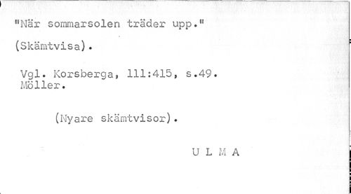 //// "När sommarsolen träder upp.11 //// (Skämtvisa)• //// Vgl. Korsberga, 111:415, s.49. Möller. //// (Nyare skämtvisor). //// U L M A ////