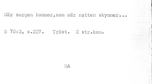 //// När sorgen kommer,som när natten skymmer... //// * <> ¦ *.**¦> "i 1 '*. ^jr^TT ^ j //// B 70:3, s.227. Tröst. 2 str.kom. //// i //// f //// i i t //// i i //// RA ////
