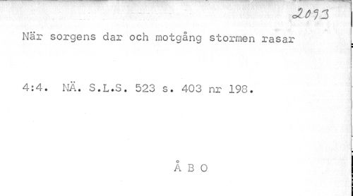 //// s« \ //// När sorgens dar och motgång stormen rasar //// ¦ //// 4:4. NÄ. S.L.S. 523 s. 403 nr 198. //// ÅBO ////