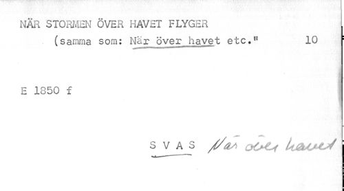 //// NÄR STORMEN ÖVER HAVET FLYGER //// (samma som: Nar över havet etc." 10 //// ¦ //// E 1850 f //// sv as /y&a oot* lueumjj j ////