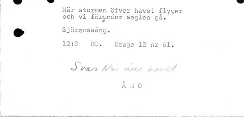 //// När stormen öfver havet flyger och vi förunder seglen gå. //// ^^ Sjömanssång. //// 12:8 BO. Brage 12 nr 61. //// <J V^Wz /(/:*. < 4J-KS /- . v / //// ÅBO //// ___' . . ... ...'___ ////