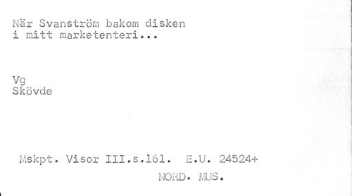 //// När Svanström bakom disken i mitt marketenteri..• //// Vg //// Skövde //// Mskpt. Visor III.s.161. E.U. 24524+ //// NORD. MUS. ////