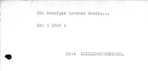 //// När Sveriges trummor dundra... //// Se: H 1869 o //// » //// KB:s SKILLINGTEYCKS REG. ////