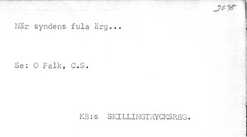 //// När syndens fula ärg... Se: O Falk» C.S. //// a //// KB:s SKILLINGTRYCKSREG. ////