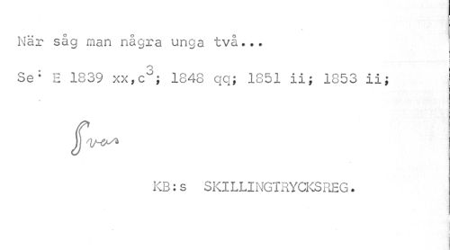 //// När såg man några unga två... //// i c //// Se' E 1839 xx,c°; 1848 qq; 1851 ii; 1853 ii; //// KB:s SKlLLINGTRYCKSREG. ////