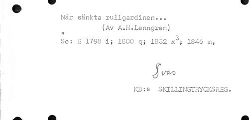 //// När sänkta rullgardinen... //// (Av A.M.Lenngren) //// ti //// Se: H 1798 i; 1800 q; 1832 x°; 1846 m, //// Jfl/M) //// KB : s S Kl L LING T RYCKS REG. ////