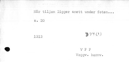 //// " ... //// ¦ //// När tiljan ligger snett under foten... s. 20 //// » //// 1313 $77 6*) //// V F F Vaggv. barnv. ////