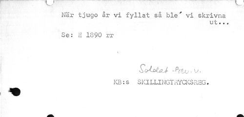 //// När tjugo år vi fyllat så ble' vi skrivna //// ut •. • //// Se: E 1890 rr //// ScJ&taJ -htLx^' //// KB:s SKILLINGTRYCKSREG. ////