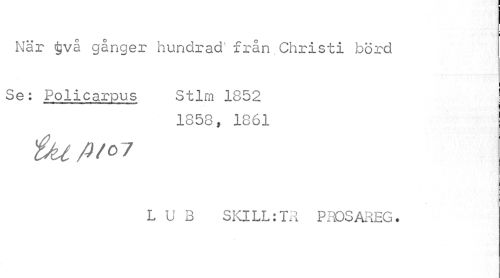 //// När §vå gånger hundrad' från Christi börd //// Se: Policarpus Stim 1852 //// 1858, 1861 //// L U B SKILL:TR PROSAREG. ////