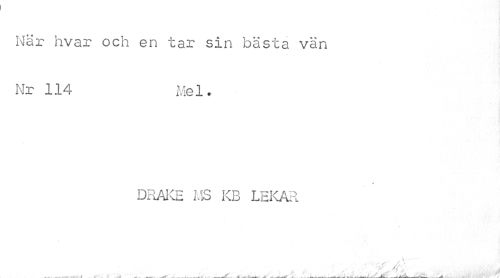 //// När hvar och en tar sin bästa vän Nr 114 Mel. //// i //// DRAKE MS KB LEKAR //// j V //// • -- ' - ^ a.- < .ét LmjJLL* t-^Ms : . , • v rf* tät^M** • • --f: ////