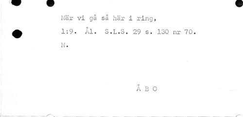 //// När vi gå så här i rino, //// ^ 1:9. Ål. S.L.S. 29 s. 130 nr 70. //// N. //// ÅBO //// ___ ////