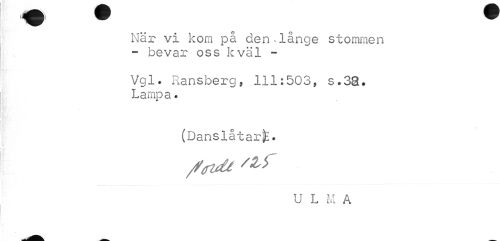 //// m w w //// När vi kom på den*långe stommen - bevar oss k väl - //// Vgl. Ransberg, 111:503, s.33. Lampa. //// (Danslåtar^. //// t' //// /avä /M //// U L M A ////