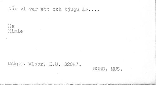 //// När vi var ett och tjugu år... //// T 7 _ //// ii a //// Himle //// Mskpt. Visor, e.u. 32087. //// nord . mus. ////