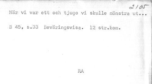 //// När vi var ett och tjugo vi skulle mönstra ut... B 45, s.33 Beväringsvisa. 12 str.kom. //// t //// RA ////