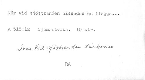 //// När vid sjöstranden hissades en flagga... //// A 515:12 Sjömansvisa. 10 str. //// RÅ ////