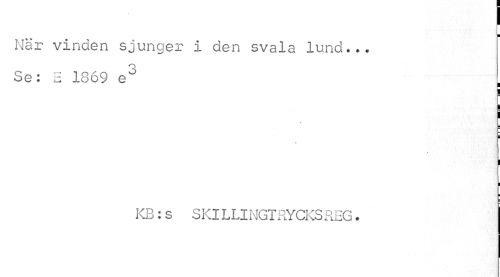 //// I //// När vinden sjunger i den svala lund... //// Se: E 1869 eö //// I ¦ //// i //// v //// I //// I ¦ //// ¦ //// KB:s SKILLINGTRYCKSREG. ////