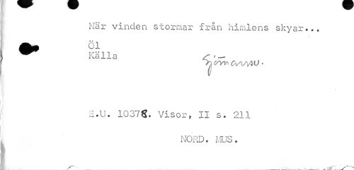 //// När vinden stormar från himlens skyar... Kå Ila £ i — //// />"; Wl CvWlf • //// E.U. 1037g. Visor, II s. 211 //// NORD. MUS. ////