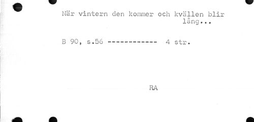 //// När vintern den kommer och kvällen blir //// lång».. //// B 90, s.56--- 4 str. //// RÅ ////