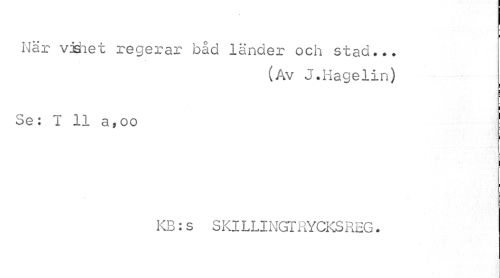 //// I //// När vishet regerar båd länder och stad... //// (Av J.Hagelin) //// Se: T 11 a,oo //// KB: s S Kl L LI NGT RYCKS REG. ////