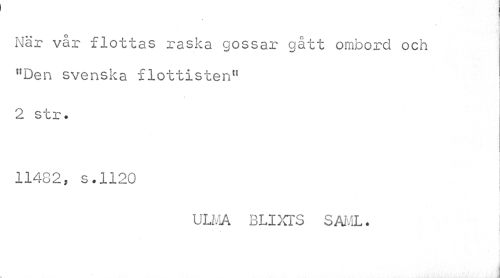//// När vår flottas raska gossar gått ombord och "Den svenska flottisten" //// 2 str. //// 11482, s.1120 //// ULMA BLIXTS SAML. //// I ////
