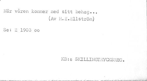 //// När våren kommer med sitt behag... //// (Av H.E.Eliström) //// Se; E 1903 oo //// \ //// KB:s SKILLINGTRYCKSREG. //// I ////
