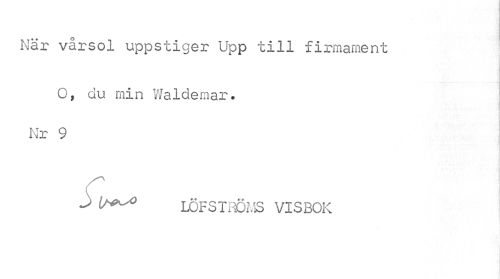 //// När vårsol uppstiger Upp till firmament //// O, du min Waldemar. Nr 9 //// c //// J Ihfi^o LÖFSTRÖMS VISBOK ////
