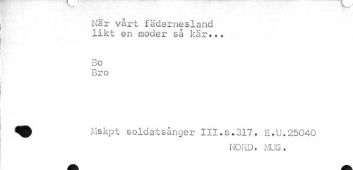 //// När vårt fädernesland likt en moder så kär... //// Bo //// Bro //// Mskpt soldatsånger III.s.317. E.U.25040 //// NORD. MUS. ////