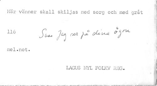 //// När vänner skall skiljas med soro och med gråt //// jM >>• i* i i //// 116 JL ^ ^ ^ ^ //// v I //// mel.not. //// i //// t ¦ i //// LAGUS NYL FOLKV REG. //// -i //// Xi //// * $1 //// , ^ .. _ I ////