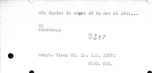 //// När äpplet är moget då är det så rätt... //// Vg //// Korsberga //// 7)117 //// 0 Mskpt. Visor VI. 18. E.U. 22572 //// NORD. MUS. ////