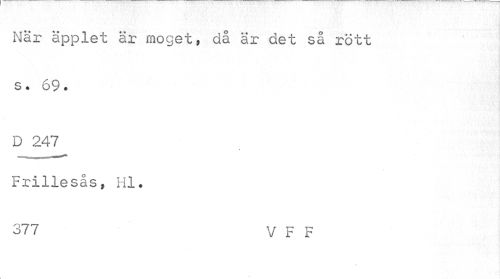 //// När äpplet är moget, då är det så rött //// s. 69. //// D 247 //// » //// Frillesås, Hl. //// 377 V F F //// y ////