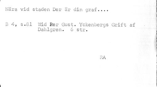 //// Nära vid staden Der är din graf • • • • //// B 4, s.81 Wid Rer Gust. Yckenbergs Grift af //// Dahlgren. 6 str. //// RA ////