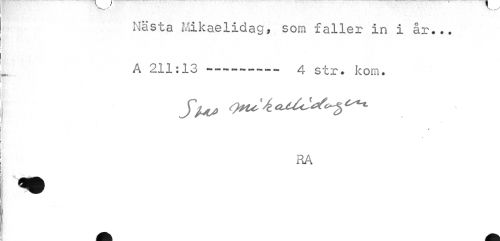 //// Nästa Mikaelidag, som faller in i år... A 211:13--- 4 str. kom. //// Sus //// * //// RA ////