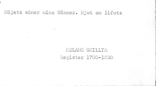 //// Nöjets söner mina Wänner. Njut om lifwts //// MELANG SKILLTR Register 1700-1330 //// Sr' //// i //// " ti ////