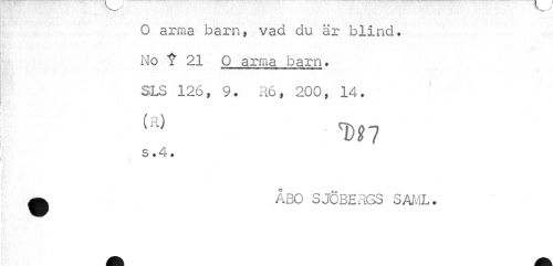 //// O arma barn, vad du är blind. //// No ¥ 21 Q arma barn. //// . i //// SLS 126, 9. R6, 200, 14. //// (R) Df7 //// S.4. //// ^ ÅBO SJÖBERGS SAML. ////